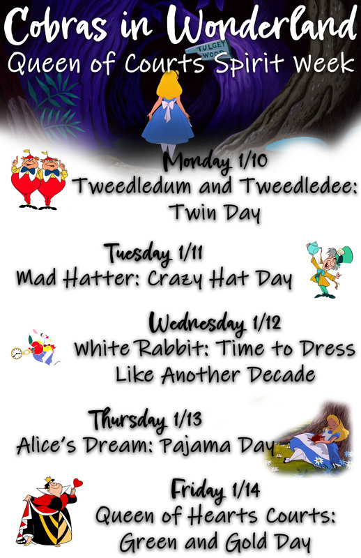Next Week is Queen of Courts Spirit Week: