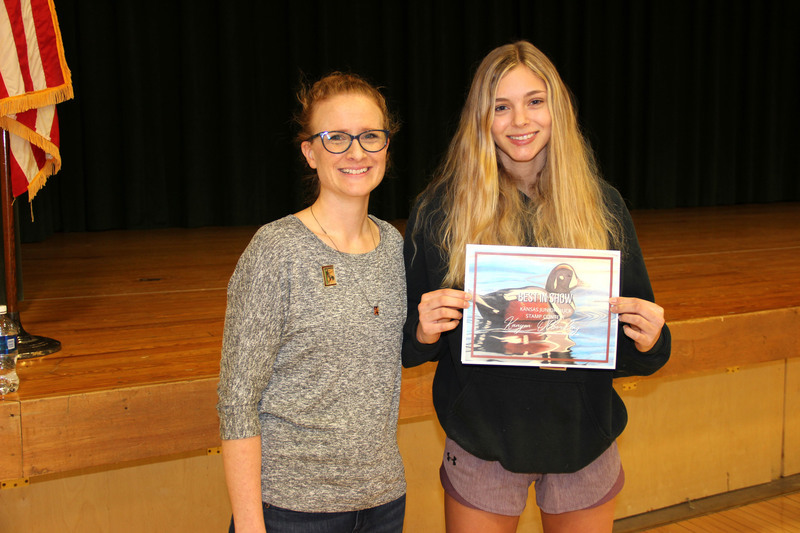 Jackson Heights junior Kanyon Olberding earned Best in Show for Kansas for her entry in the Kansas Junior Duck Stamp contest. Her colored pencil of a Harlequin duck will be sent to Washington DC for the Federal Junior Duck Stamp Contest scheduled to begin April 22nd. Congratulations to Kanyon!